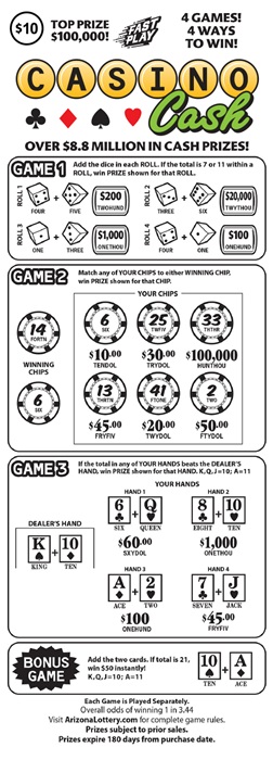 Prizes subject to prior sales. Tampering with a Lottery ticket is a Class 3 felony punishable by law. All tickets, transactions and winners are subject to Lottery Rules and State Law. You must be 21 years or older to purchase tickets.